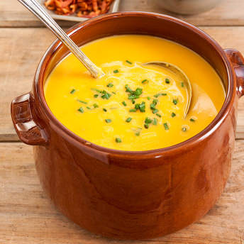 SWEET POTATO SOUP (Served with bacon crumbles and chives)